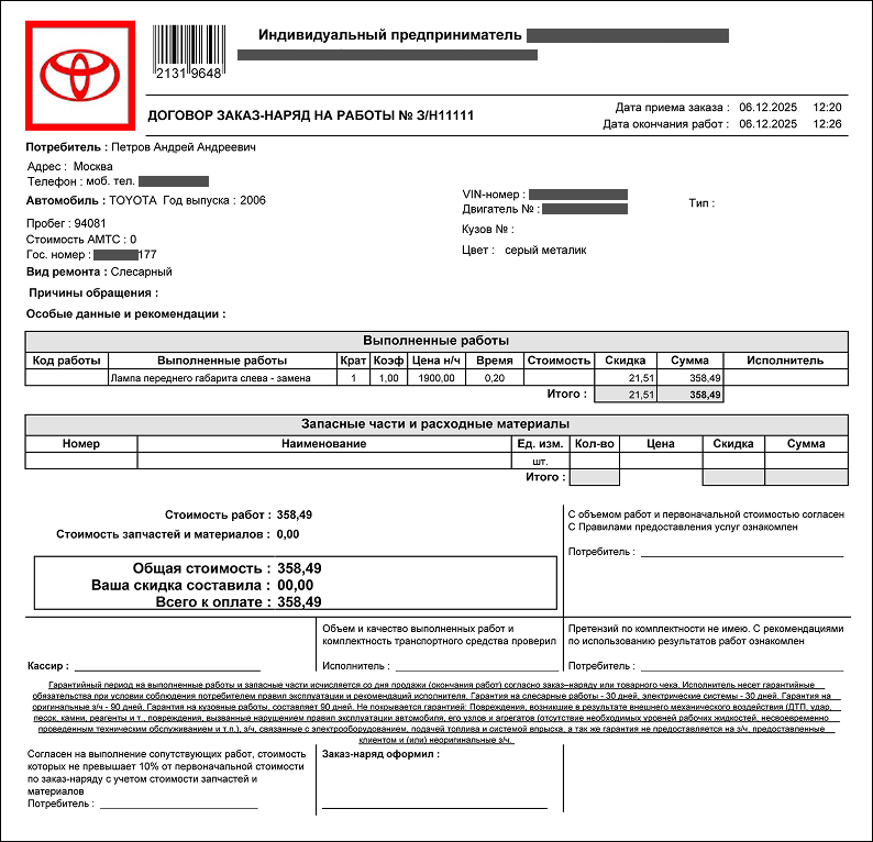 Одной из неотъемлемых и важнейших частей работы нашего автосервиса является оформление документа «Заказа-наряда».